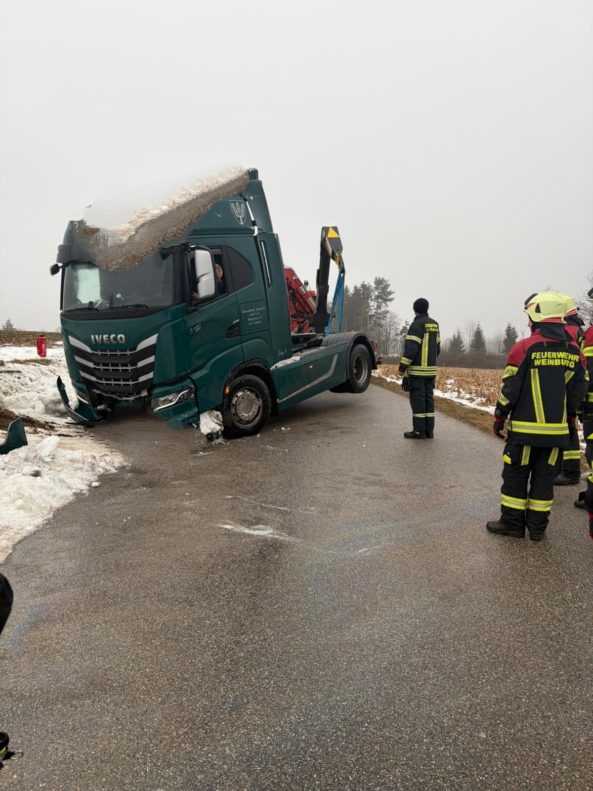 Am 28. Januar um 09:00 Uhr wurden wir von der Polizei zu einer Lkw-Bergung zwischen Klangen und Wielandsberg alarmiert. Der Fahrer blieb unverletzt!