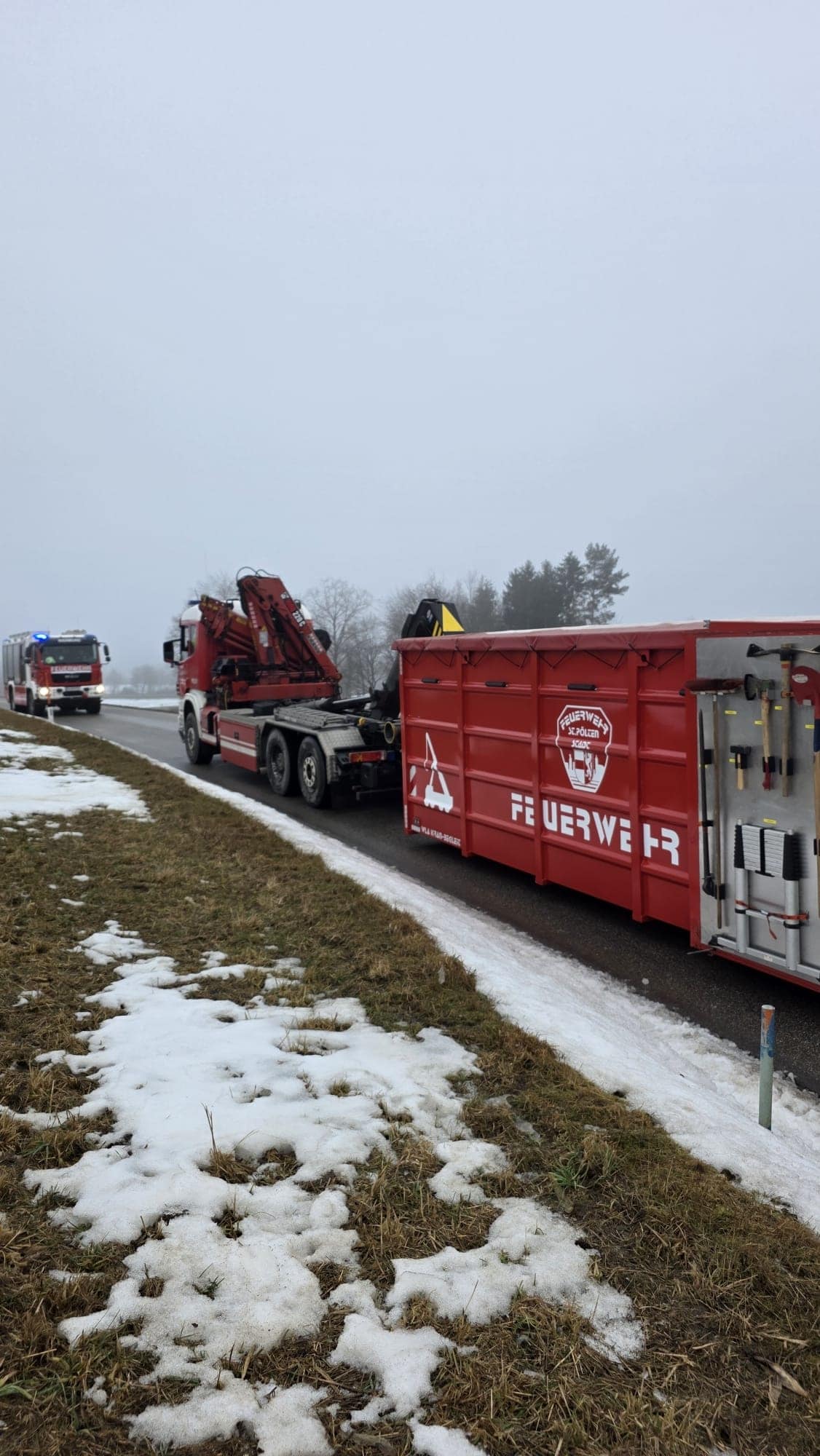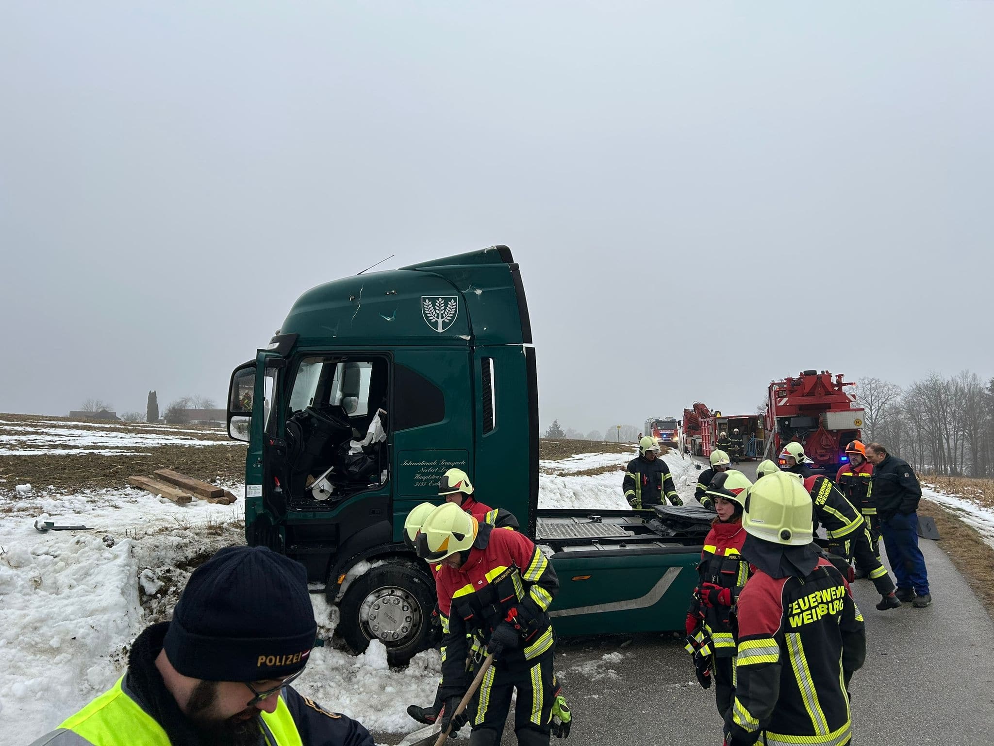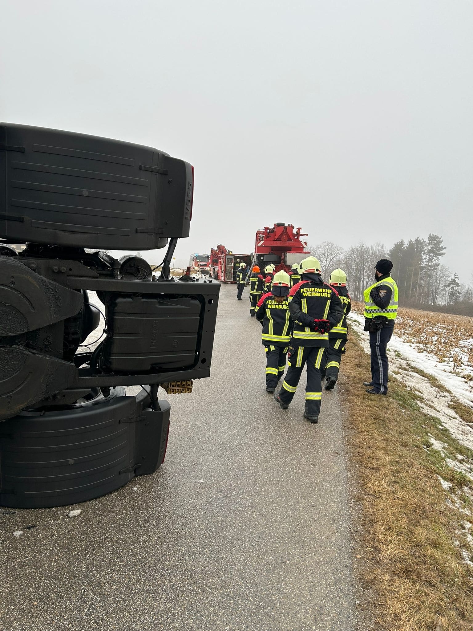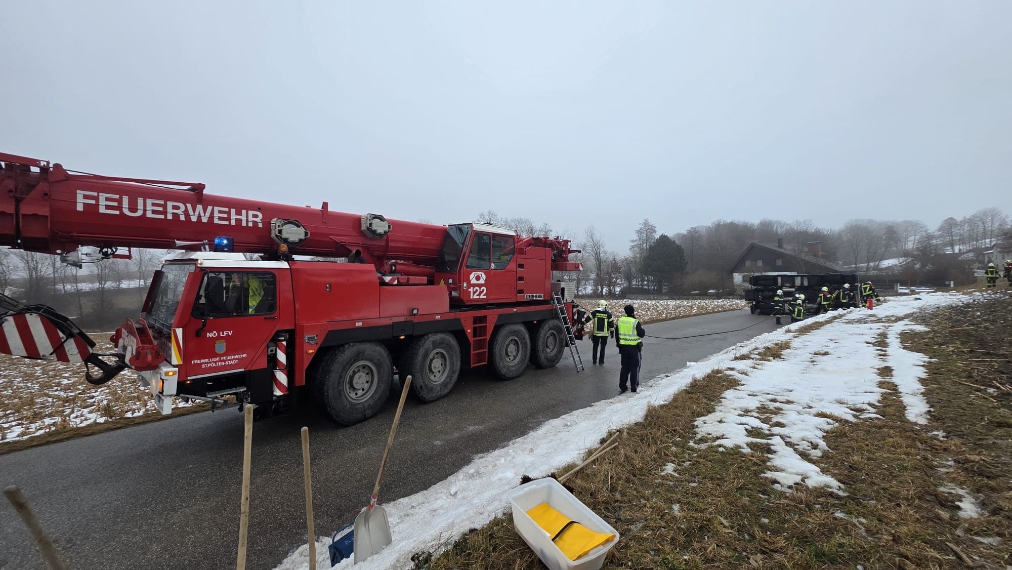 Einsatzkräfte: FF Weinburg, RTW, Polizei; Kran und Kran- Begleitfahrzeug der Feuerwehr St. Pölten
