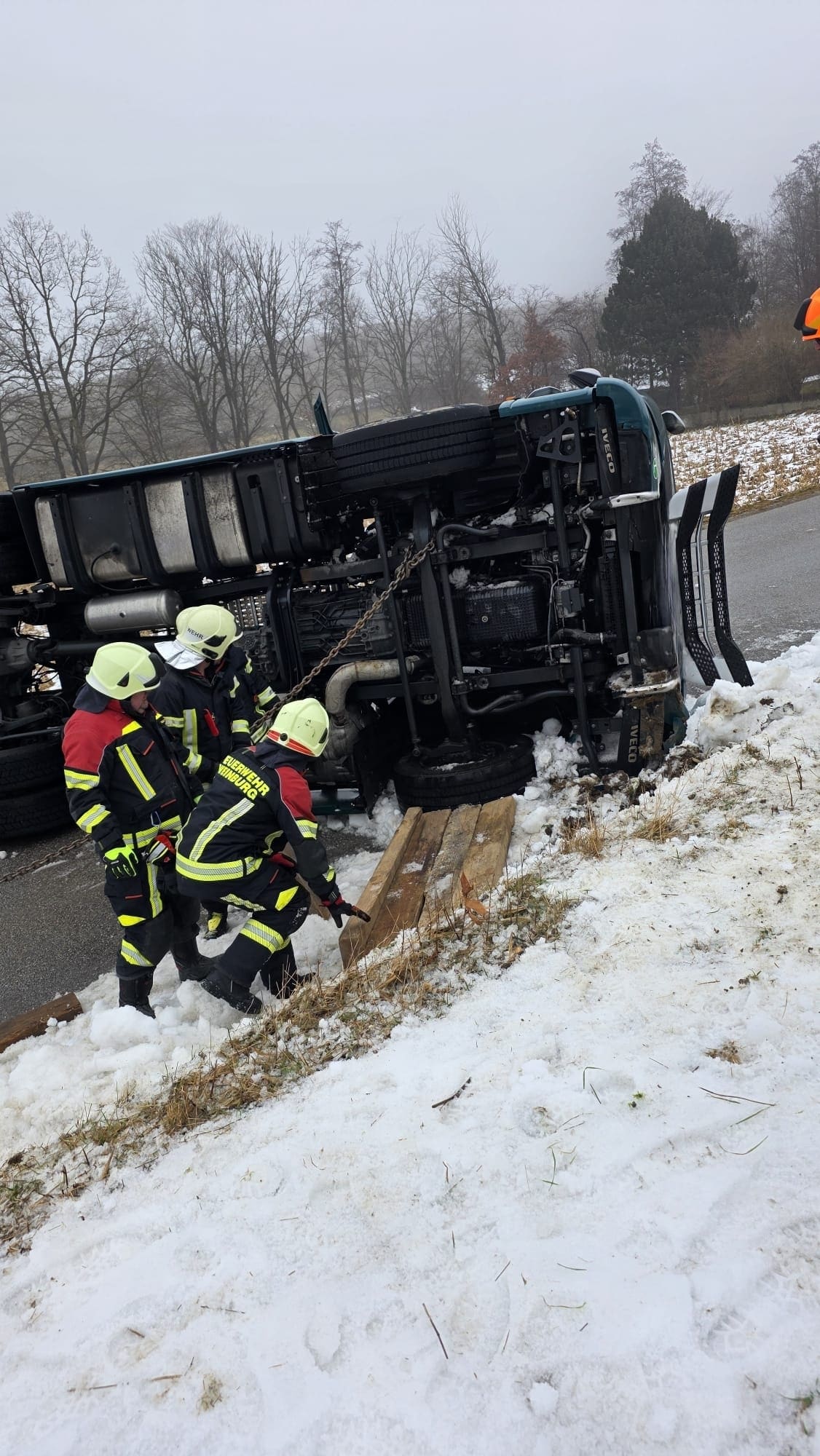 Am 28. Januar um 09:00 Uhr wurden wir von der Polizei zu einer Lkw-Bergung zwischen Klangen und Wielandsberg alarmiert. Der Fahrer blieb unverletzt!